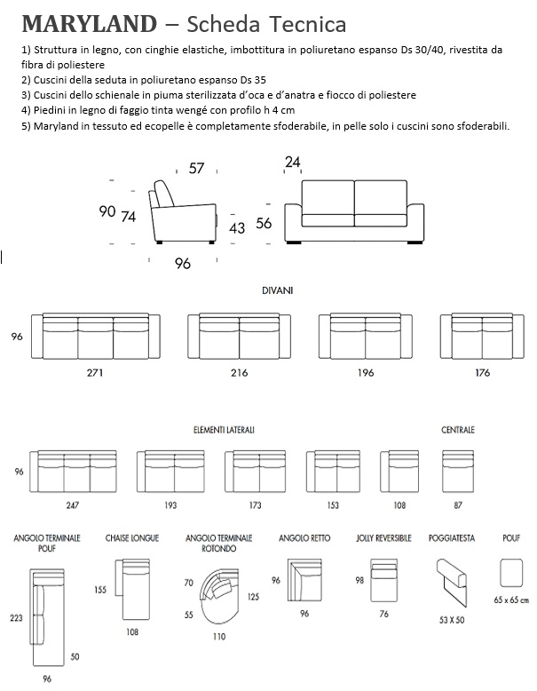 Sfoderabilità : in tessuto ed ecopelle è completamente sfoderabile, in pelle solo i cuscini sono sfoderabili.